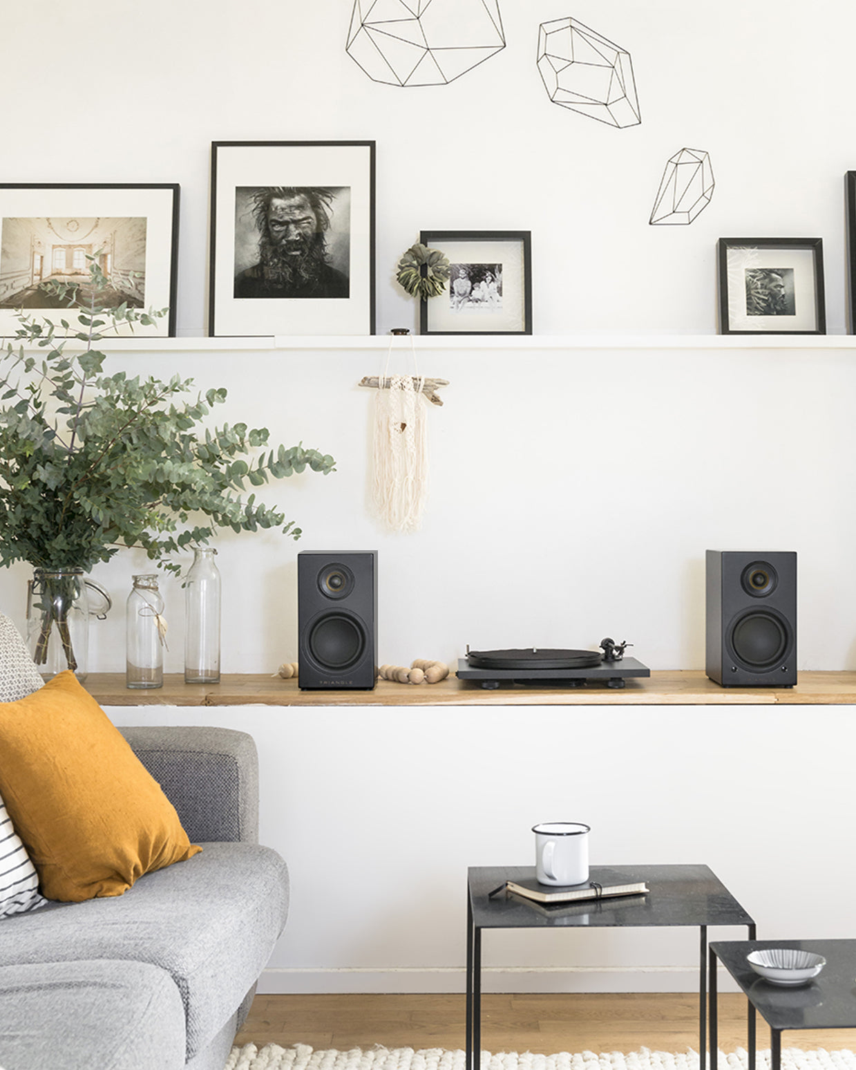 These packs integrate a turntable developed by the specialist manufacturer Pro-Ject. The arm and cell are pre-adjusted to allow quick and easy installation.