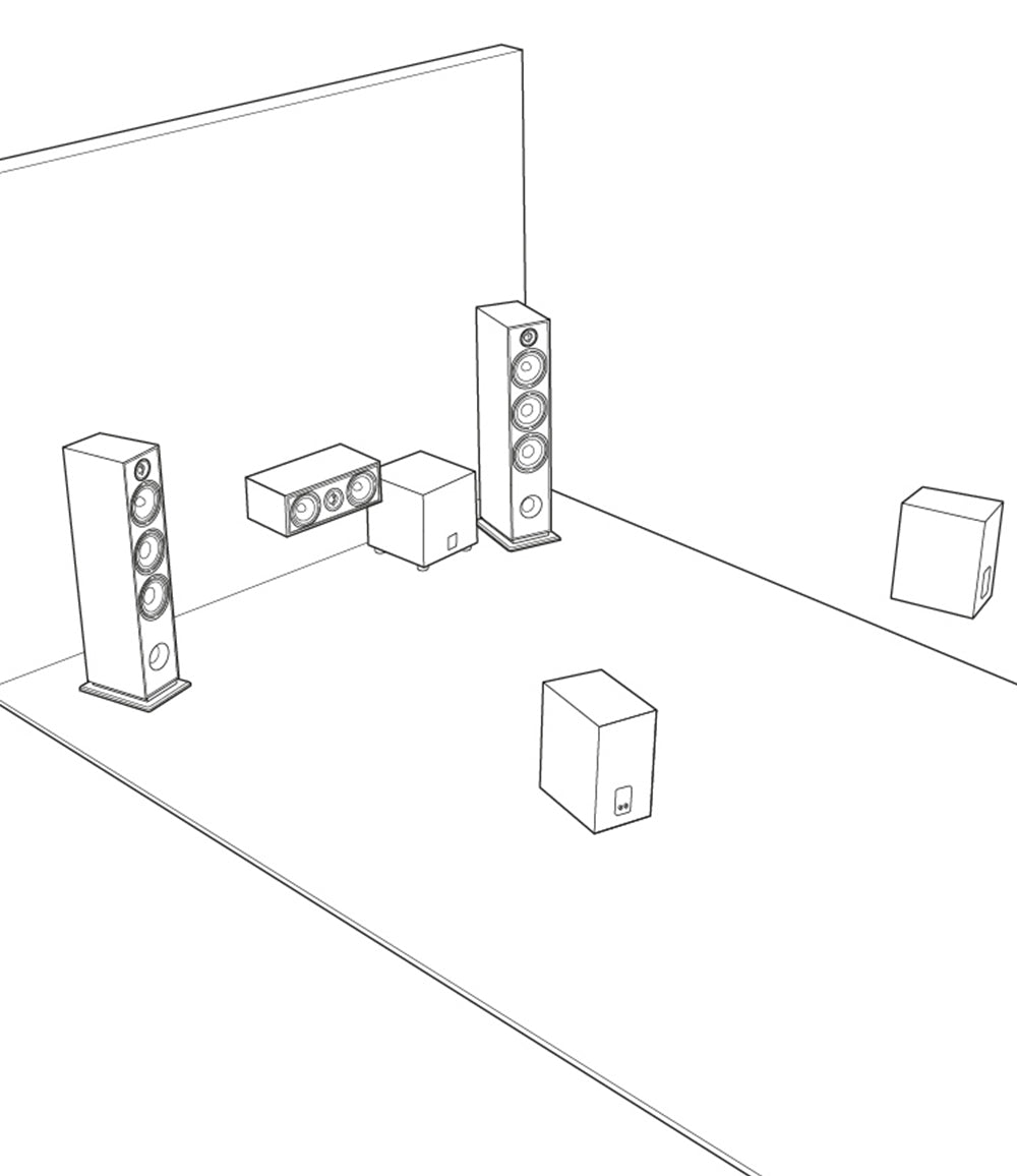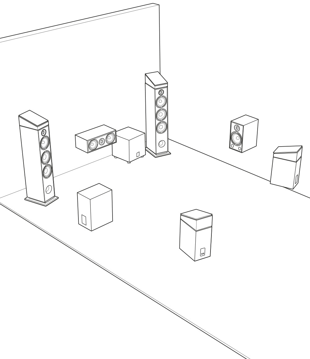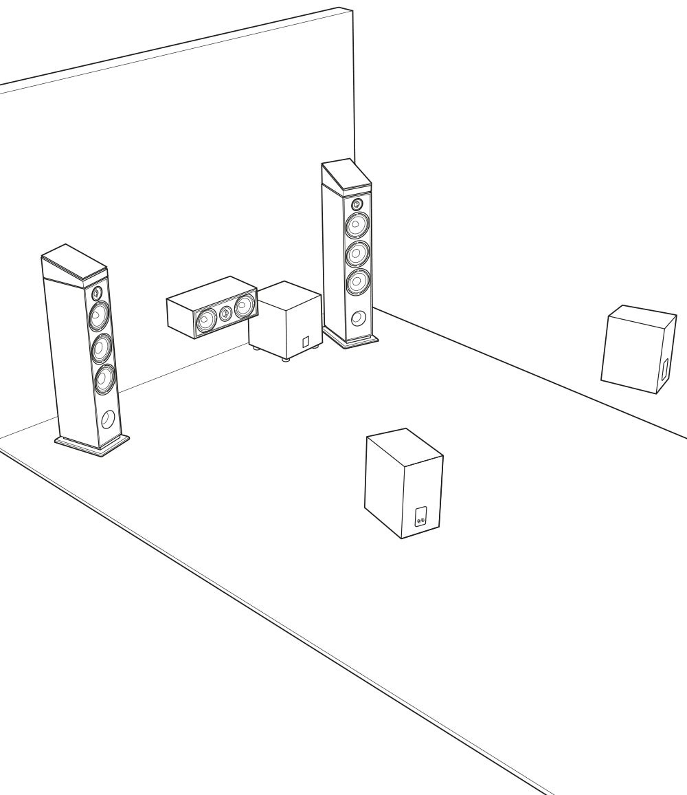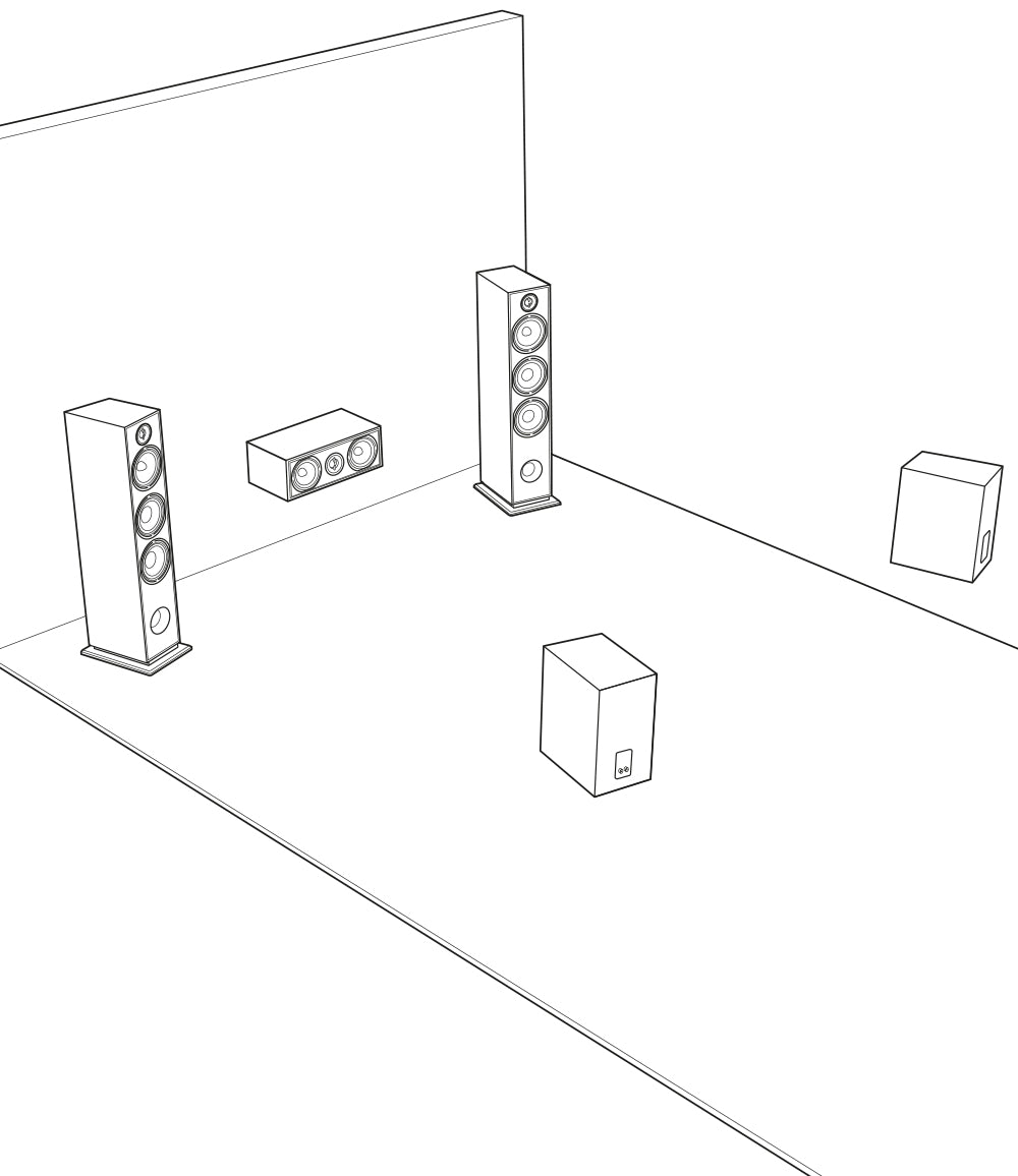 - For larger rooms (>20m²), we recommend front-mounted column speakers. This will fill your listening area with high-quality sound.