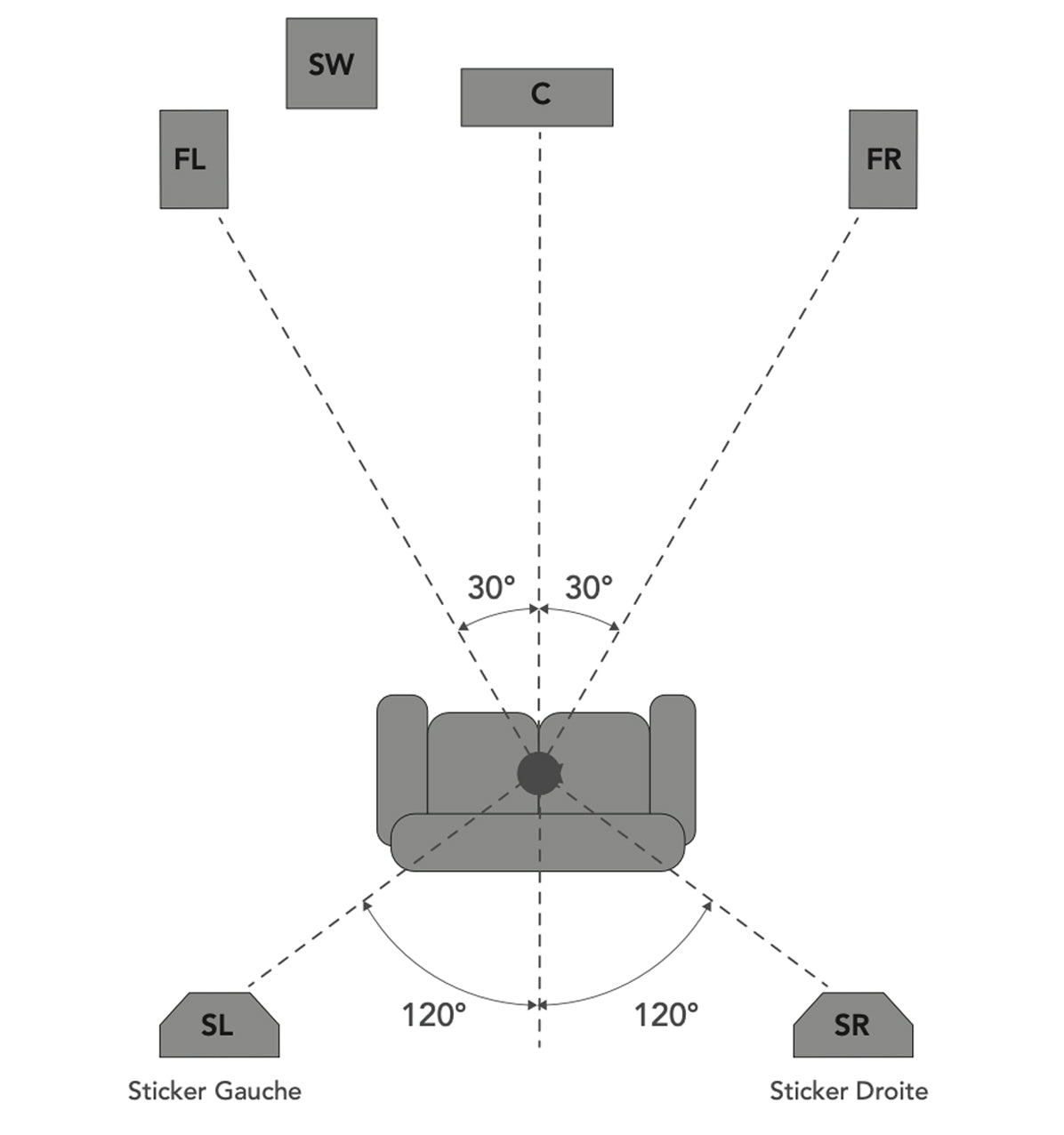 Your listening area should not be too close to the speakers: a minimum distance of 2 meters should be maintained.