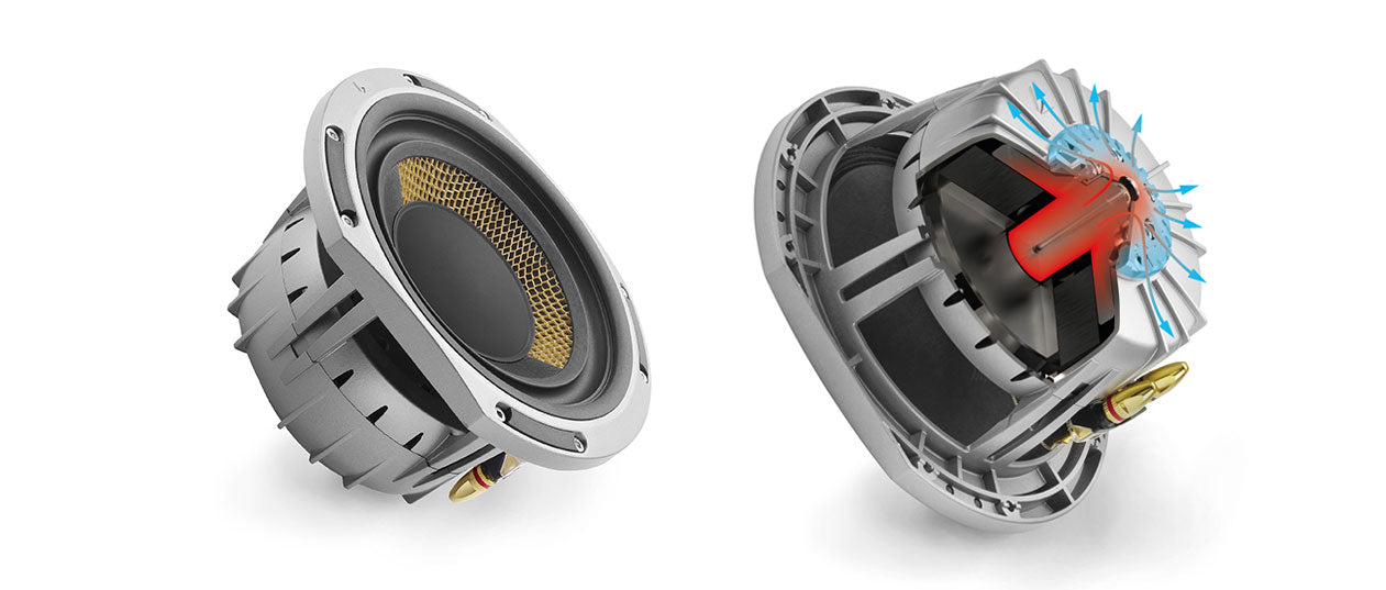 An intensive study of vibration phenomena was carried out to ensure the cabinet's rigidity in the face of the vibrations generated by the speakers.