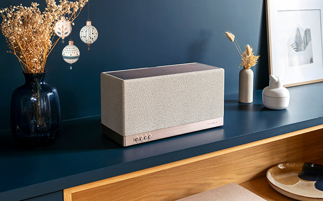 Fabric grilles with magnetic fastenings add a touch of refinement while protecting the loudspeakers, combining meticulous design and functionality.