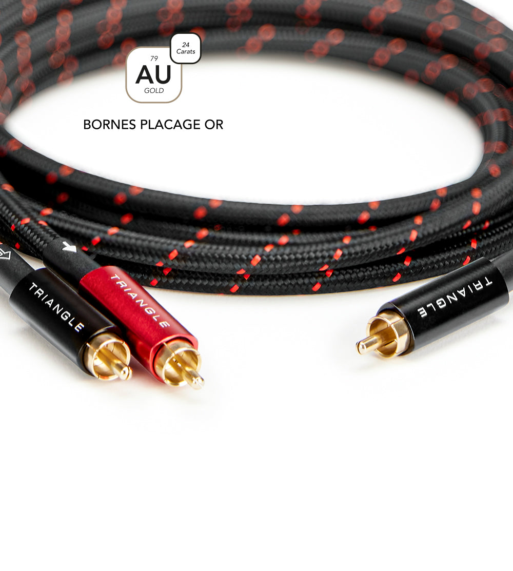 A chaque extrémité, les connecteurs RCA plaqués or assurent un contact durable et une bonne résistance à l’oxydation.