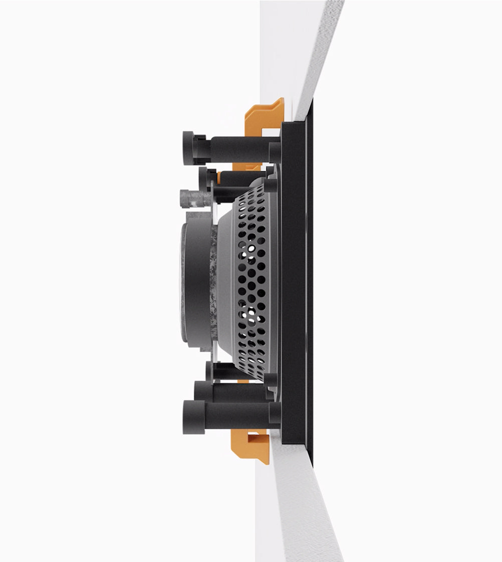 The circular ICT7 / EMT7 in-wall speakers can be placed in the ceiling to reproduce vertical sound effects and take advantage of the latest Dolby Atmos and DTS-X technologies.